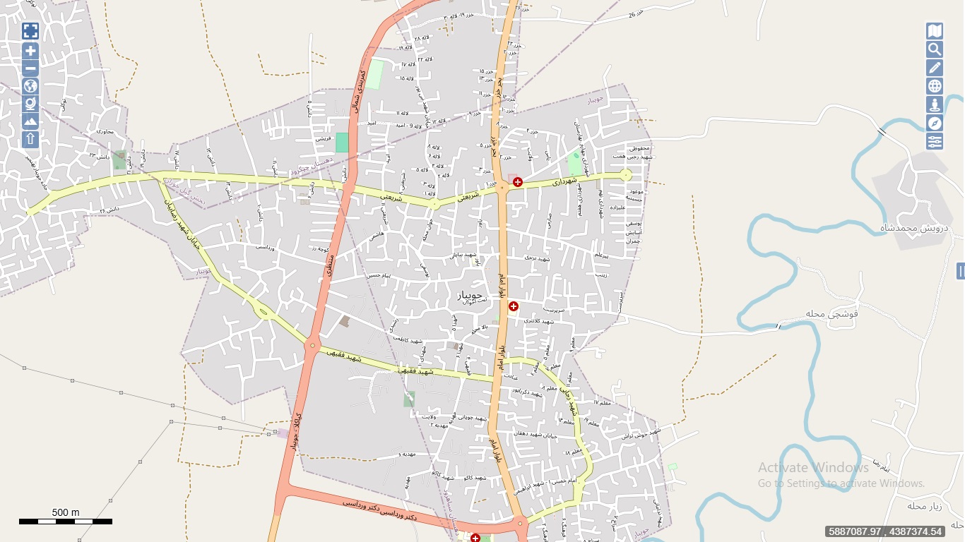 نقشه همراه با تصویر هوایی ماهواره ای شهر جویبار در اتوکد با مختصات UTM