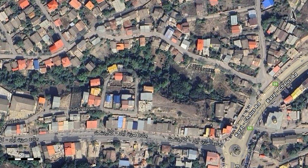 نقشه همراه با تصویر هوایی - ماهواره ای شهر مرزن آباد در اتوکد با مختصات UTM