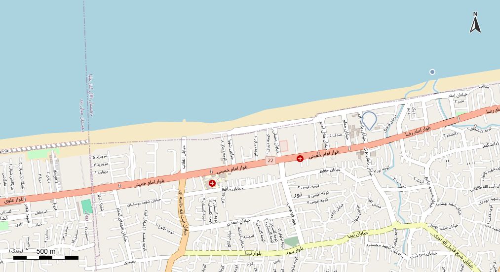 نقشه همراه با تصویر هوایی - ماهواره ای شهر نور در اتوکد با مختصات UTM