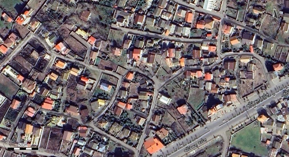 نقشه همراه با تصویر هوایی - ماهواره ای شهر چمخاله در اتوکد با مختصات UTM