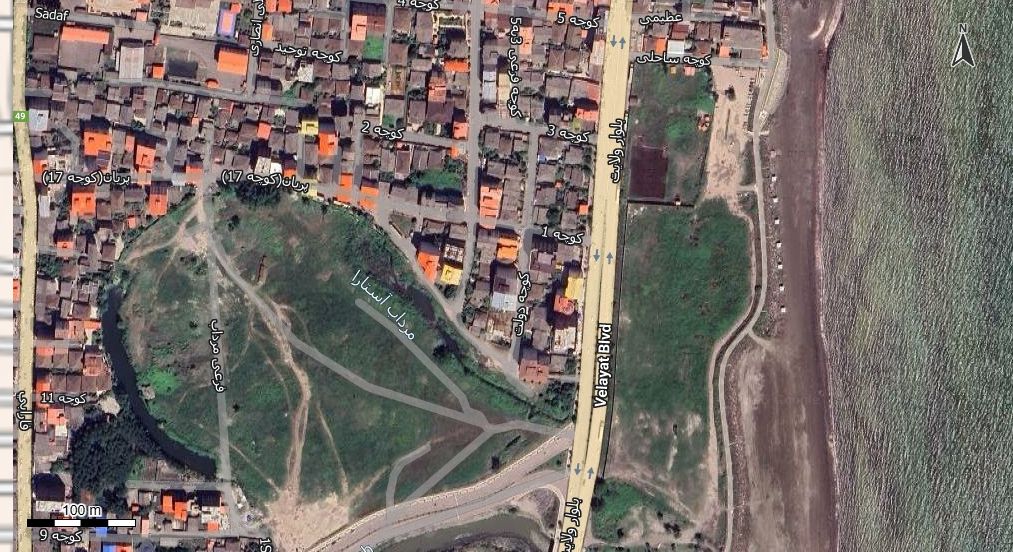 نقشه همراه با تصویر هوایی - ماهواره ای شهر آستارا در اتوکد با مختصات UTM