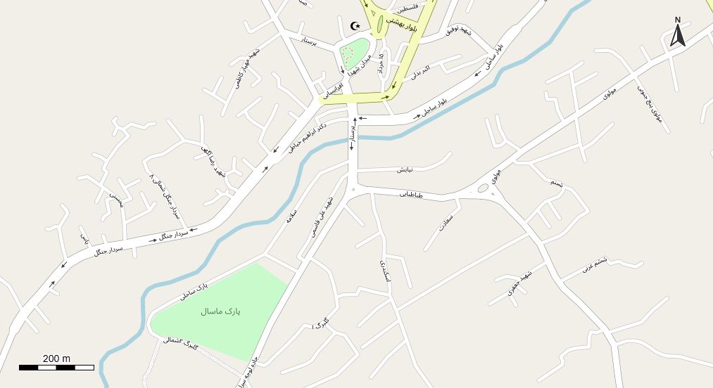 نقشه همراه با تصویر هوایی - ماهواره ای شهر ماسال در اتوکد با مختصات UTM