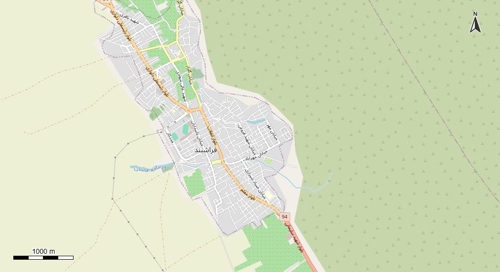 نقشه همراه با تصویر هوایی - ماهواره ای شهر فراشبند در اتوکد با مختصات UTM