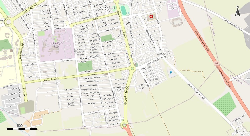 نقشه همراه با تصویر هوایی - ماهواره ای شهر فسا در اتوکد با مختصات UTM