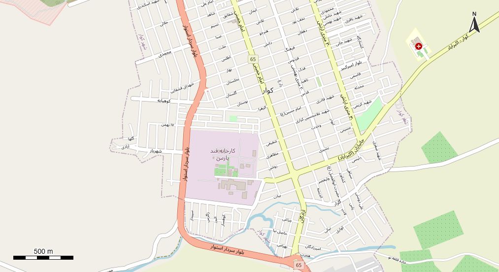 نقشه همراه با تصویر هوایی - ماهواره ای شهر کوار در اتوکد با مختصات UTM
