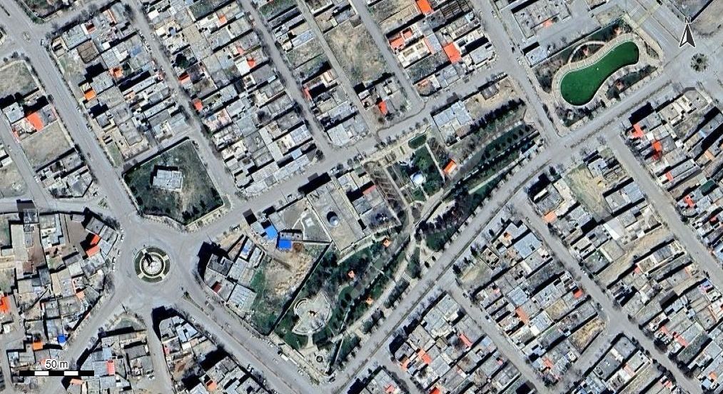 نقشه همراه با تصویر هوایی - ماهواره ای ملک آباد در اتوکد با مختصات UTM