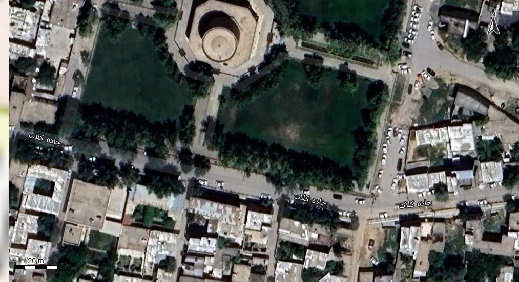 نقشه همراه با تصویر هوایی - ماهواره ای شهر کلات در اتوکد با مختصات UTM
