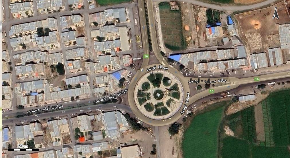 نقشه همراه با تصویر هوایی - ماهواره ای شهر سراب در اتوکد با مختصات UTM