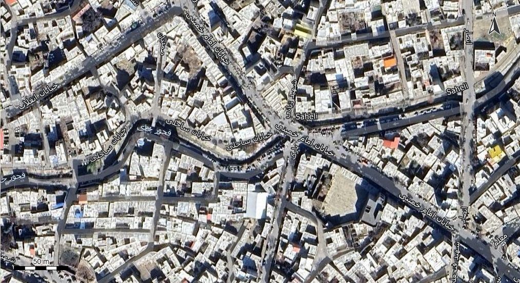 نقشه همراه با تصویر هوایی - ماهواره ای شهر تکاب در اتوکد با مختصات UTM