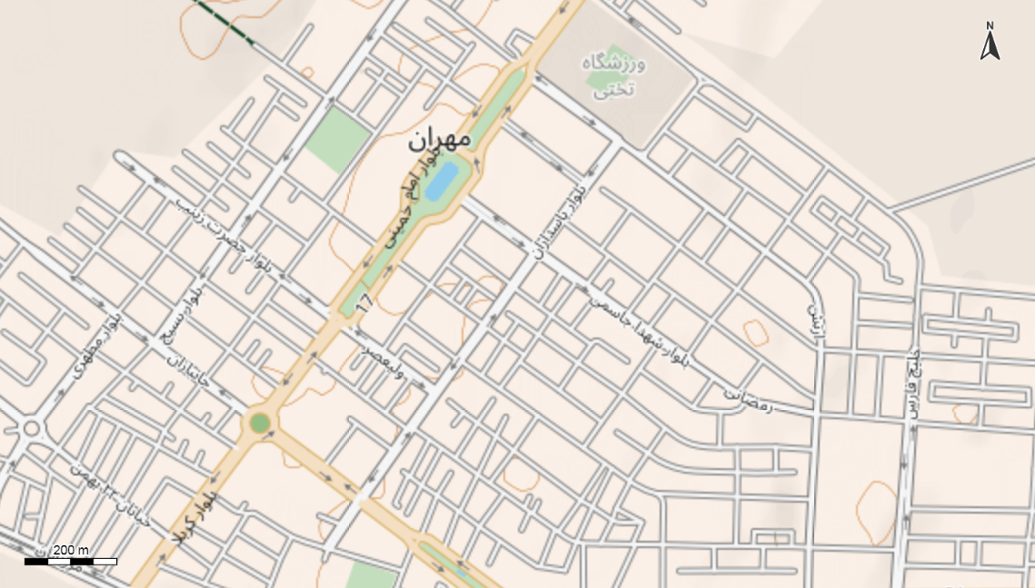 نقشه همراه با تصویر هوایی - ماهواره ای شهر مهران در اتوکد با مختصات UTM