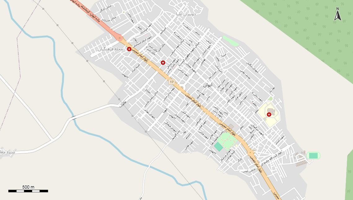 نقشه همراه با تصویر هوایی - ماهواره ای شهر ایوان در اتوکد با مختصات UTM