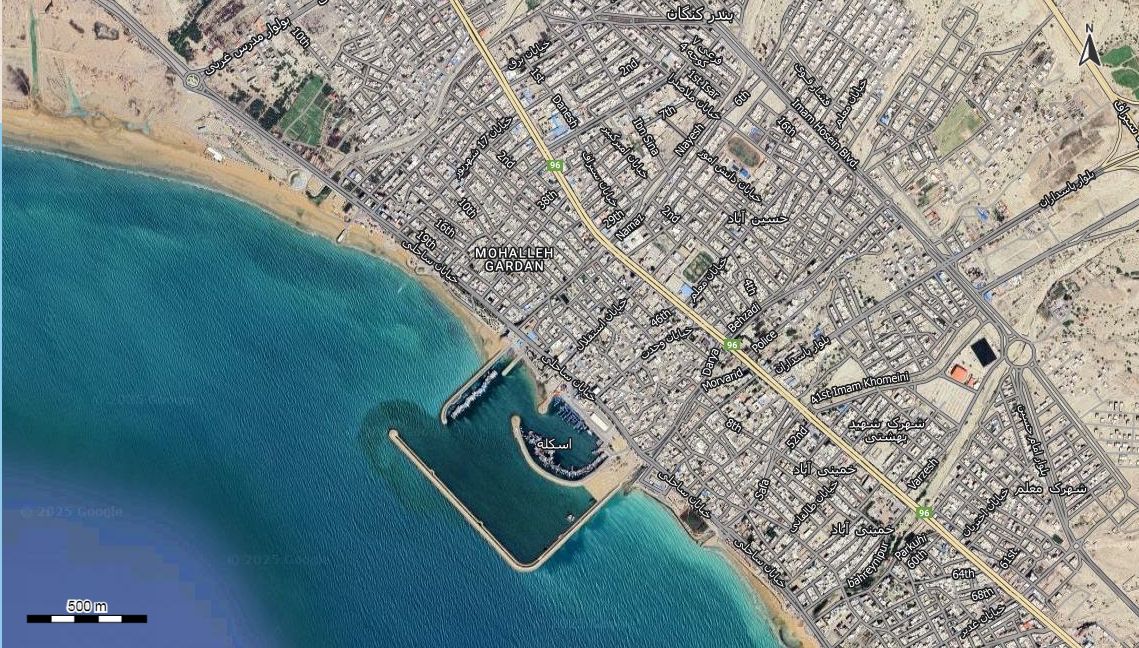 نقشه همراه با تصویر هوایی - ماهواره ای شهر کنگان در اتوکد با مختصات UTM