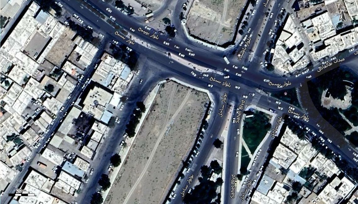 نقشه همراه با تصویر هوایی - ماهواره ای شهر قائن در اتوکد با مختصات UTM