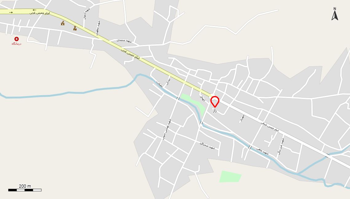 نقشه همراه با تصویر هوایی - ماهواره ای شهر راز در اتوکد با مختصات UTM