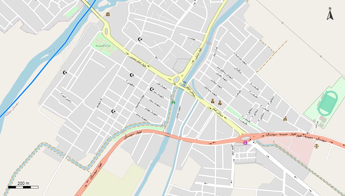 نقشه همراه با تصویر هوایی - ماهواره ای شهر حمیدیه در اتوکد با مختصات UTM