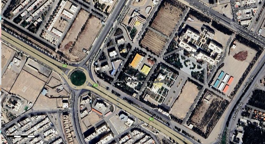 نقشه همراه با تصویر هوایی - ماهواره ای دامغان در اتوکد با مختصات UTM
