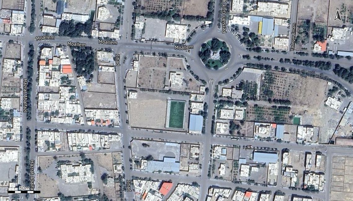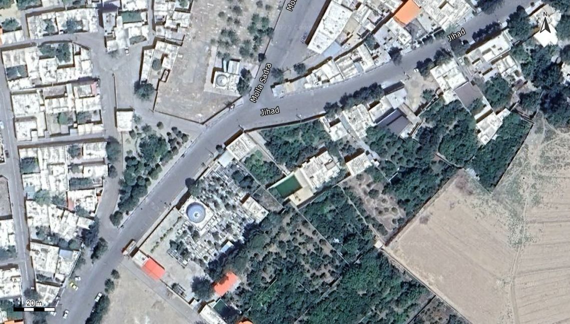 نقشه همراه با تصویر هوایی - ماهواره ای کهک در اتوکد با مختصات UTM
