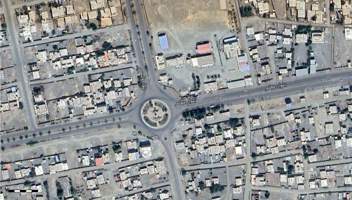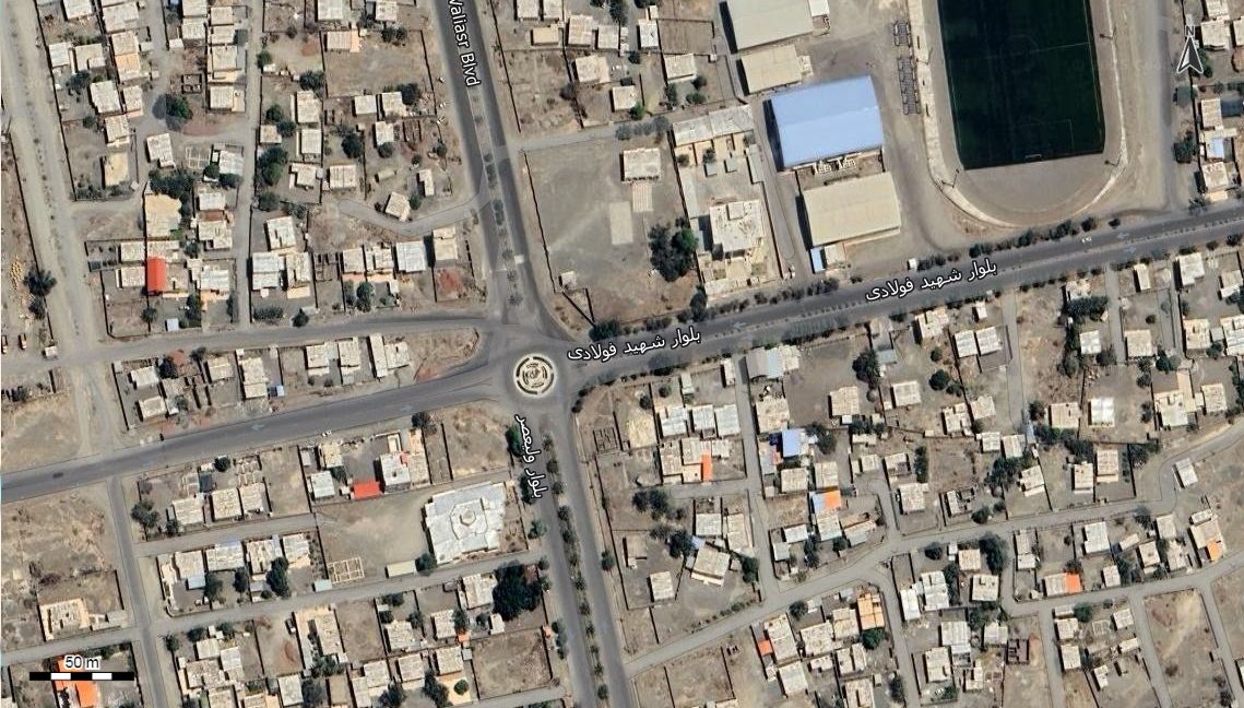 نقشه همراه با تصویر هوایی - ماهواره ای منوجان در اتوکد با مختصات UTM
