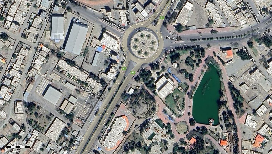 نقشه همراه با تصویر هوایی - ماهواره ای کهنوج در اتوکد با مختصات UTM