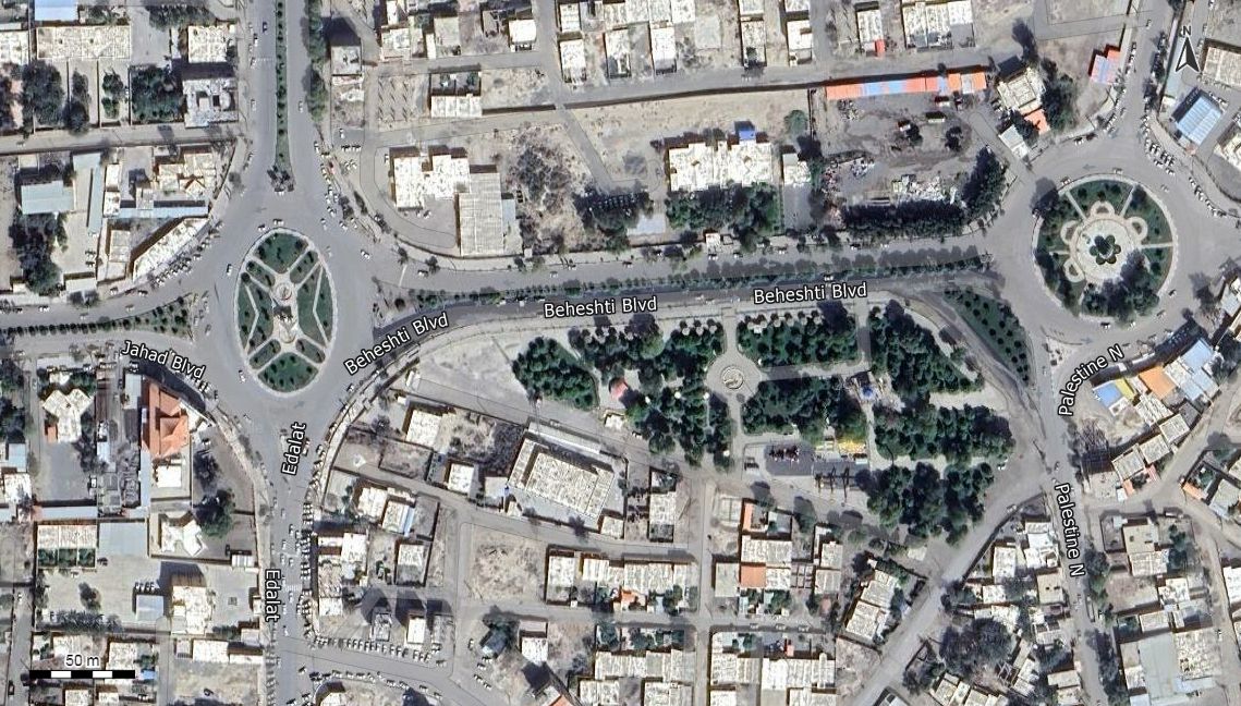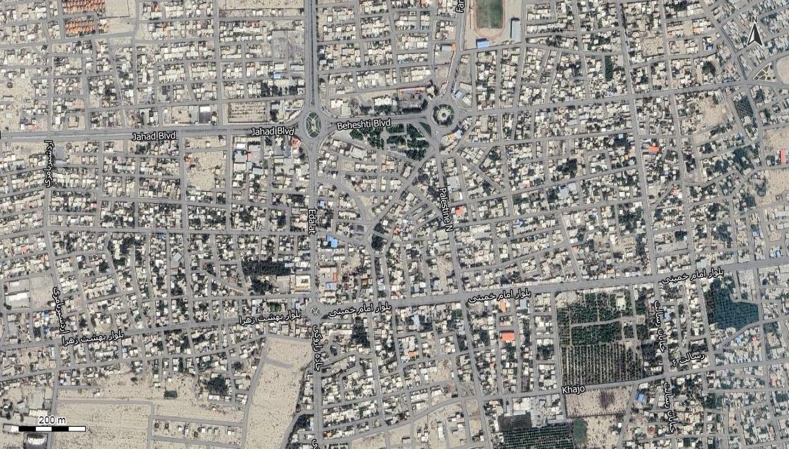 نقشه همراه با تصویر هوایی - ماهواره ای عنبر آباد در اتوکد با مختصات UTM