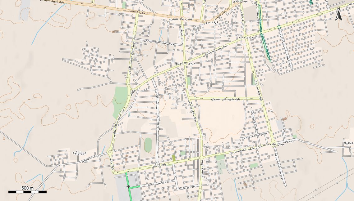 نقشه همراه با تصویر هوایی - ماهواره ای بردسیر در اتوکد با مختصات UTM