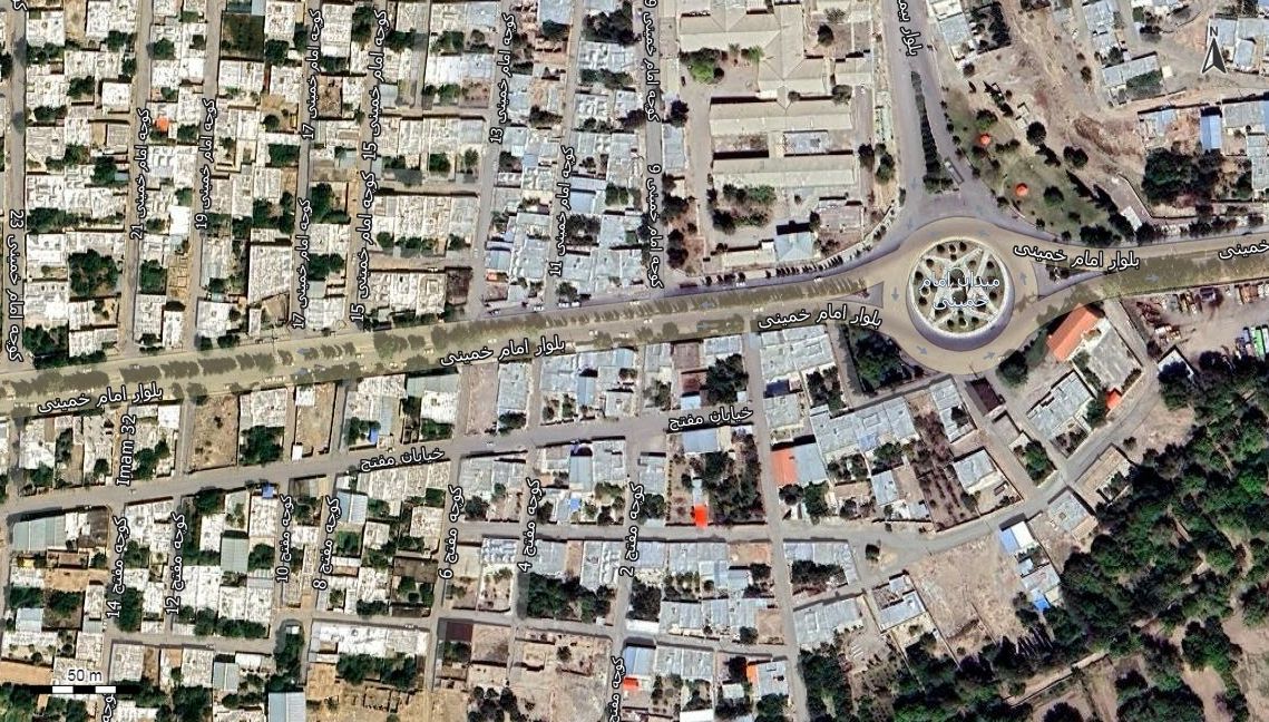 نقشه همراه با تصویر هوایی - ماهواره ای بافت در اتوکد با مختصات UTM