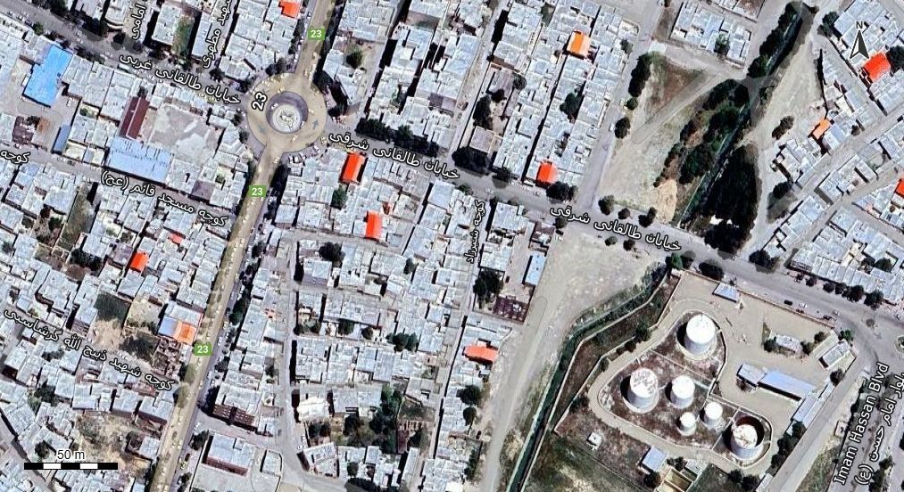 نقشه همراه با تصویر هوایی - ماهواره ای بیجار در اتوکد با مختصات UTM