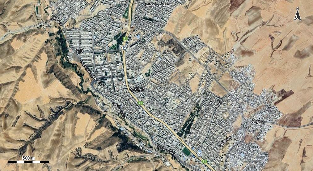 نقشه همراه با تصویر هوایی - ماهواره ای دیواندره در اتوکد با مختصات UTM