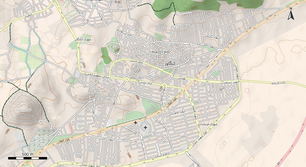نقشه همراه با تصویر هوایی - ماهواره ای کنگاور در اتوکد با مختصات UTM