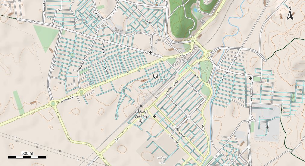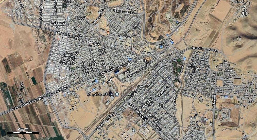 نقشه همراه با تصویر هوایی - ماهواره ای ازنا در اتوکد با مختصات UTM
