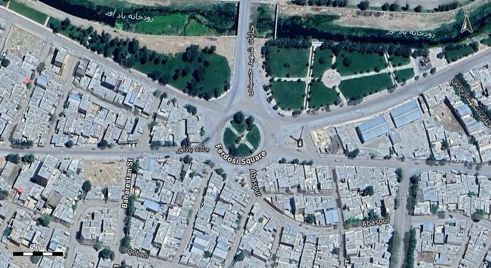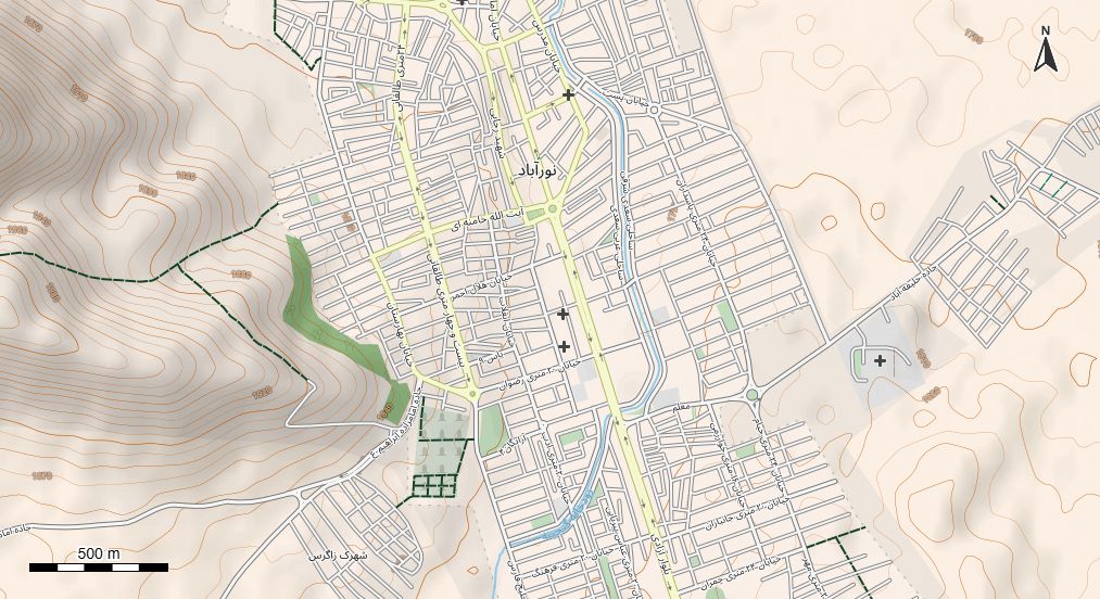 نقشه همراه با تصویر هوایی - ماهواره ای نورآباد در اتوکد با مختصات UTM