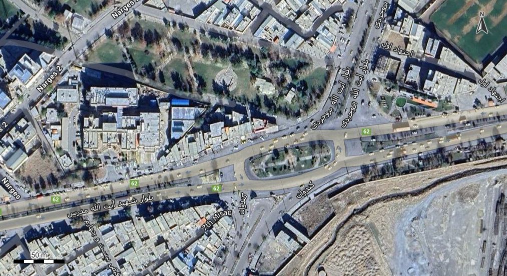 نقشه همراه با تصویر هوایی - ماهواره ای درود در اتوکد با مختصات UTM