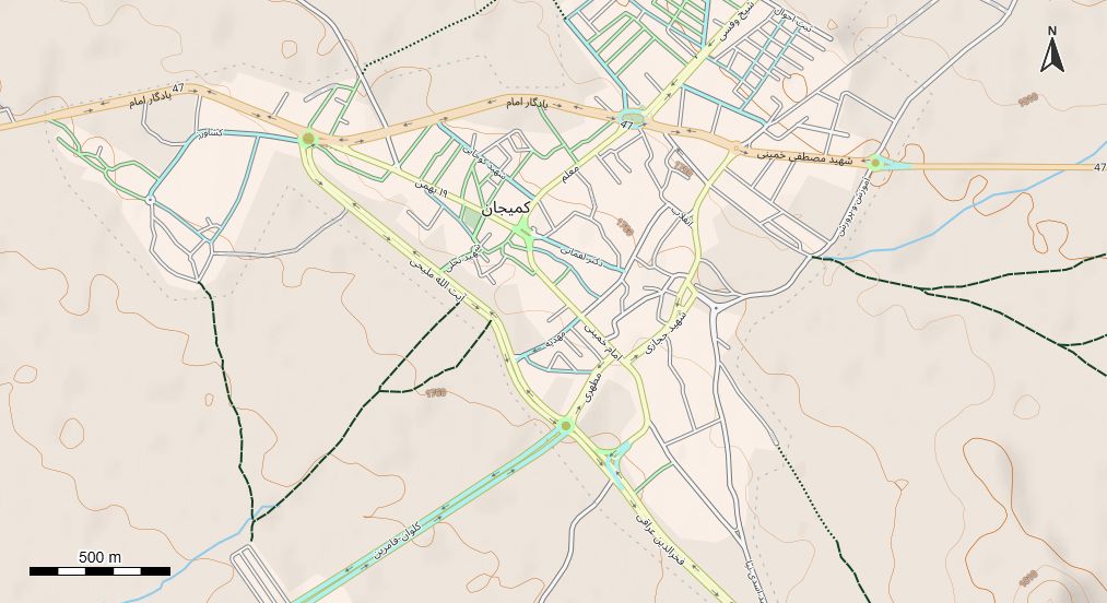 نقشه همراه با تصویر هوایی - ماهواره ای کمیجان در اتوکد با مختصات UTM