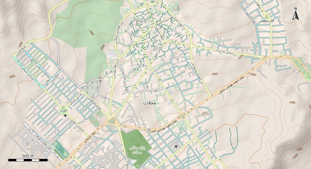 نقشه همراه با تصویر هوایی - ماهواره ای محلات در اتوکد با مختصات UTM