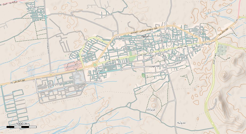 نقشه همراه با تصویر هوایی - ماهواره ای ابرکوه در اتوکد با مختصات UTM