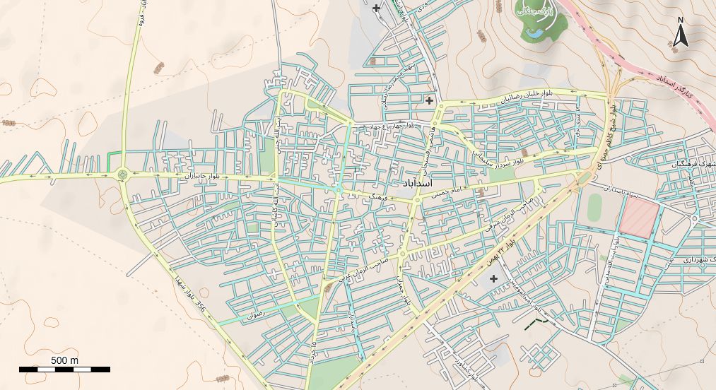 نقشه همراه با تصویر هوایی - ماهواره ای اسدآباد در اتوکد با مختصات UTM