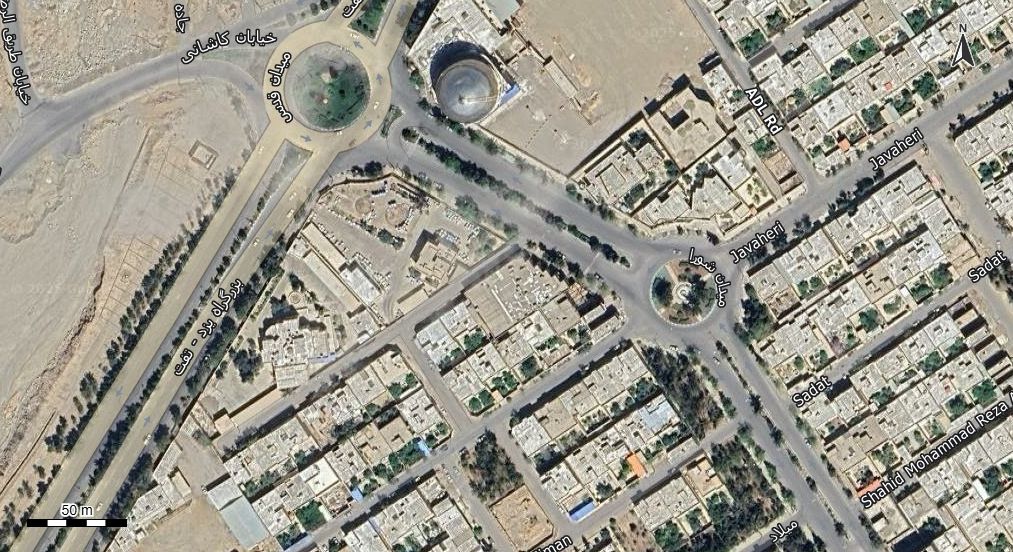 نقشه همراه با تصویر هوایی - ماهواره ای تفت در اتوکد با مختصات UTM