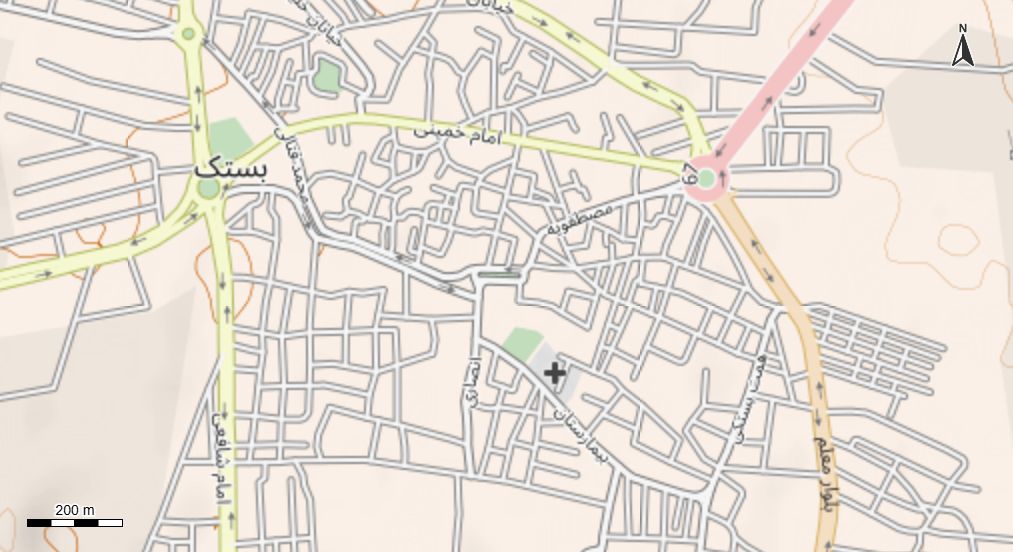 نقشه همراه با تصویر هوایی - ماهواره ای بستک در اتوکد با مختصات UTM
