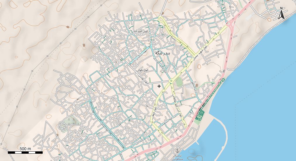 نقشه همراه با تصویر هوایی - ماهواره ای بندر لنگه در اتوکد با مختصات UTM