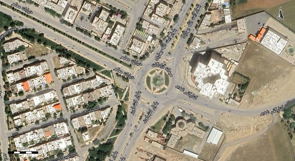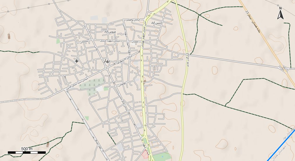 نقشه همراه با تصویر هوایی - ماهواره ای بهار در اتوکد با مختصات UTM