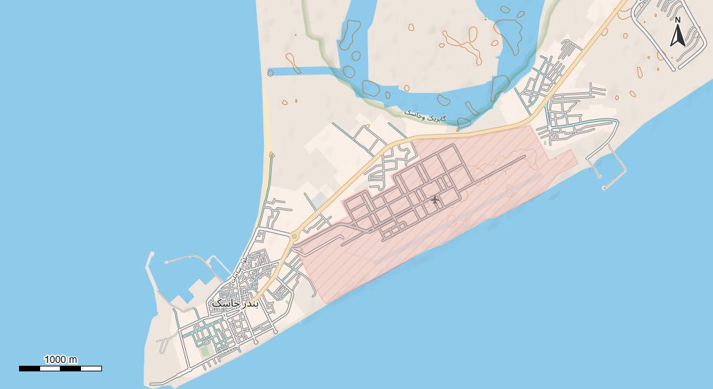 نقشه همراه با تصویر هوایی - ماهواره ای جاسک در اتوکد با مختصات UTM