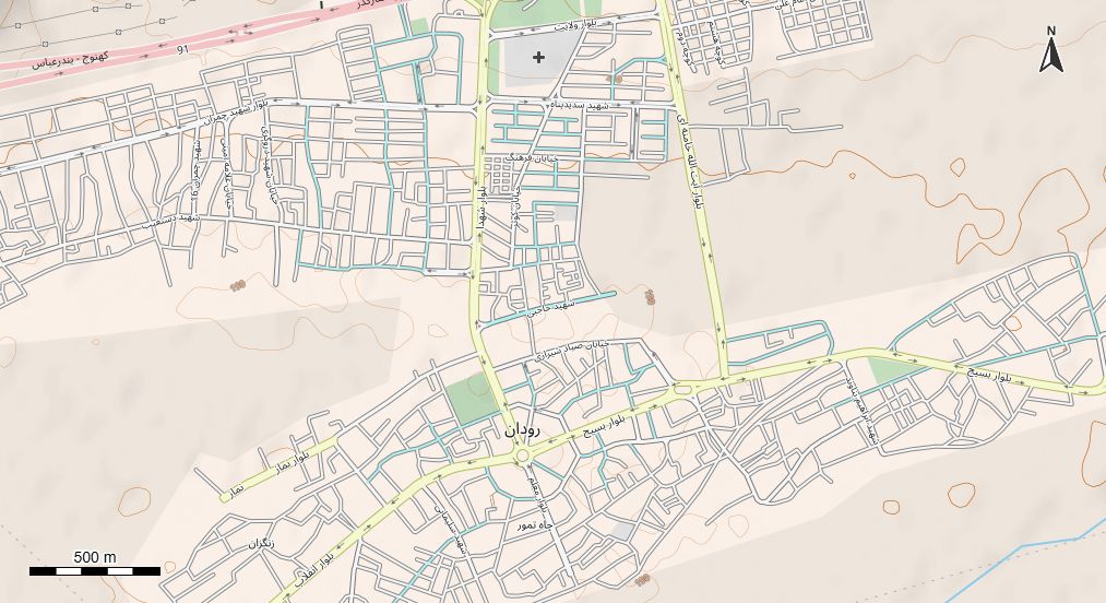 نقشه همراه با تصویر هوایی - ماهواره ای رودان در اتوکد با مختصات UTM
