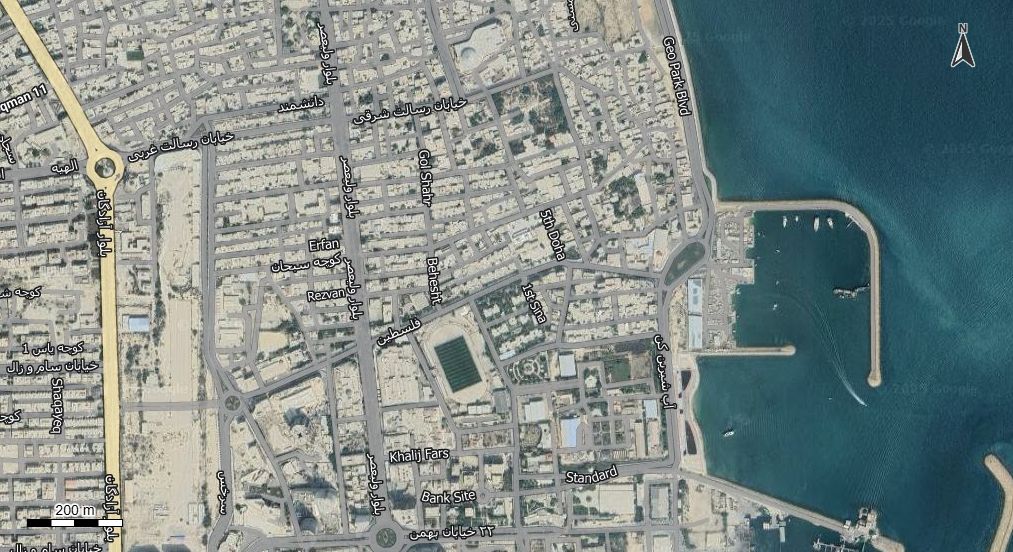 نقشه همراه با تصویر هوایی - ماهواره ای قشم در اتوکد با مختصات UTM