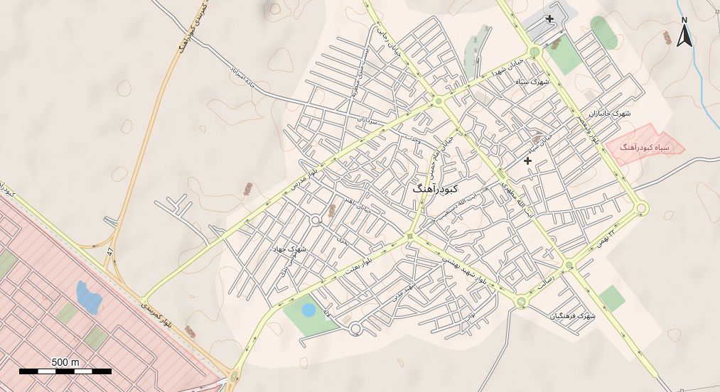 نقشه همراه با تصویر هوایی - ماهواره ای کبودرآهنگ در اتوکد با مختصات UTM