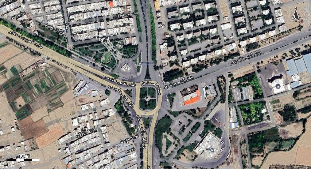 نقشه همراه با تصویر هوایی - ماهواره ای ملایر در اتوکد با مختصات UTM