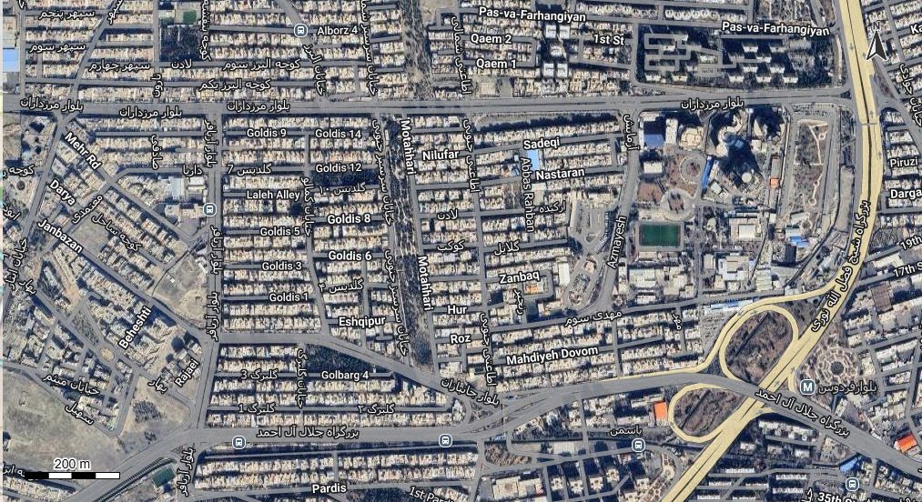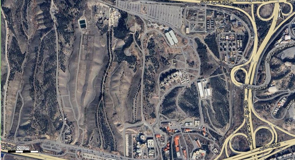 نقشه با تصویر هوایی - ماهواره ای منطقه ۲ تهران در اتوکد با مختصات UTM