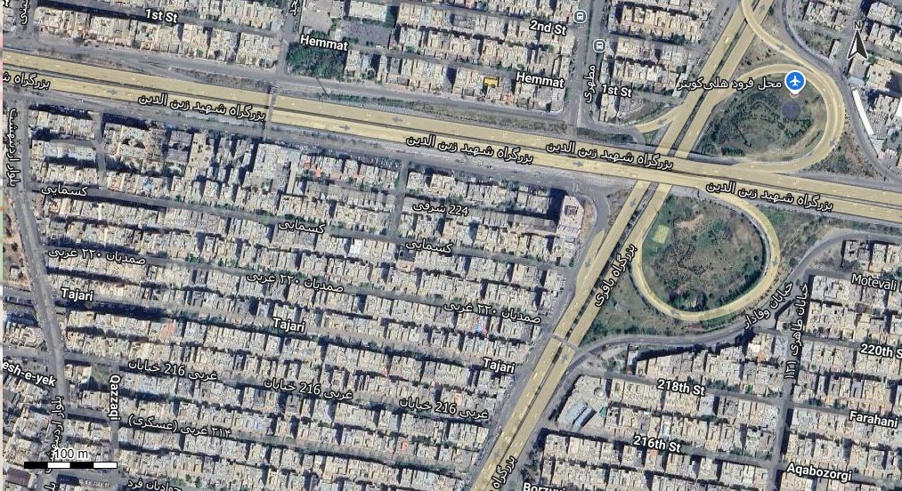 نقشه با تصویر ماهواره ای منطقه ۳ تهران در اتوکد با مختصات UTM