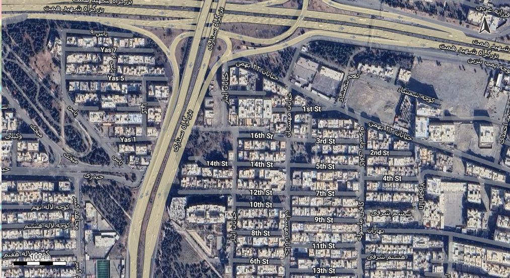 نقشه با تصویر هوایی - ماهواره ای منطقه 5 تهران در اتوکد با مختصات UTM