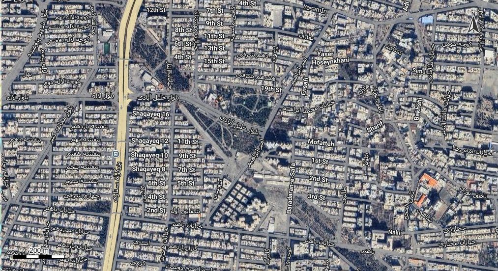 نقشه با تصویر ماهواره ای منطقه 5 تهران در اتوکد با مختصات UTM