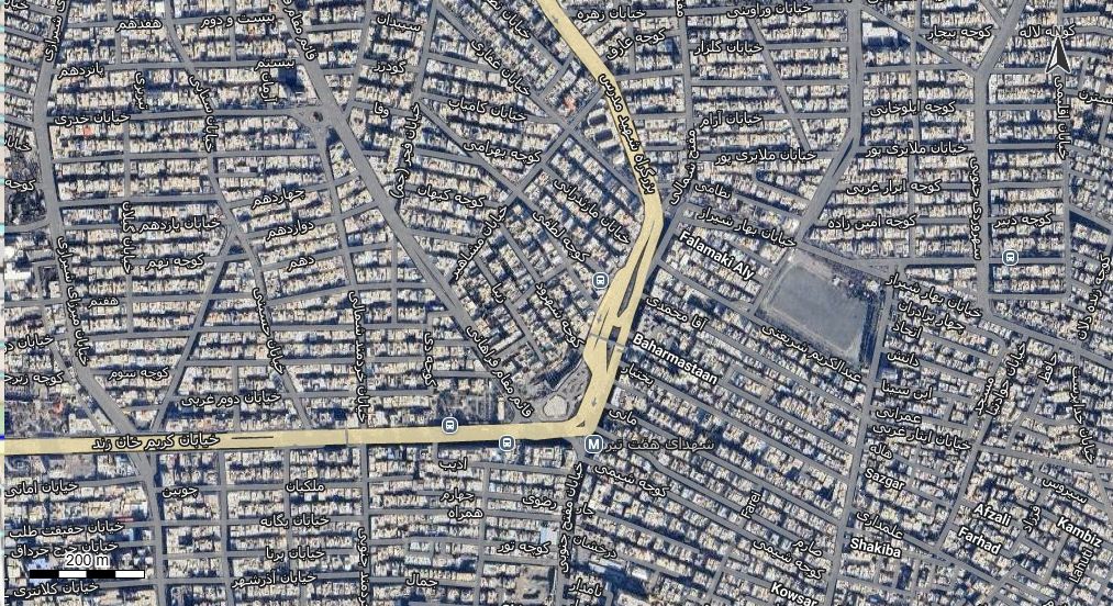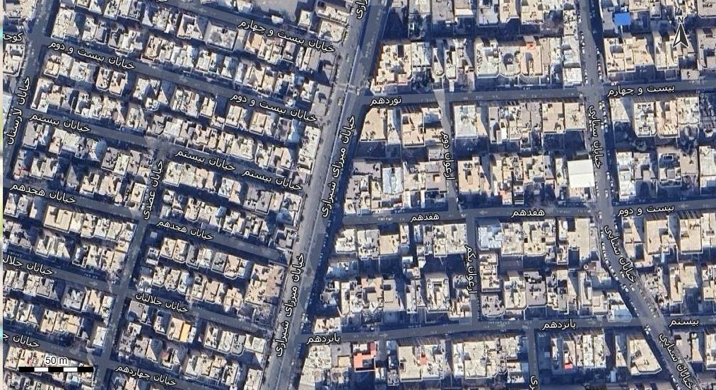 نقشه با تصویر ماهواره ای منطقه 8 تهران در اتوکد با مختصات UTM